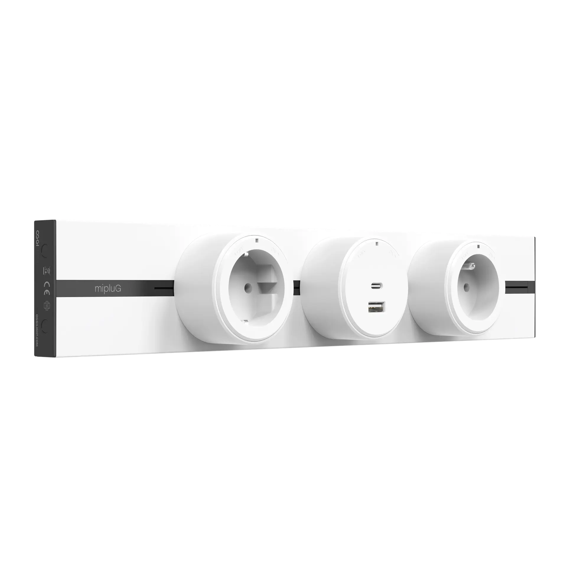 mipluG, c’est un track 230V sur lequel vous venez clipser vos plugs en un simple quart de tour.